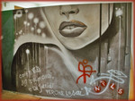 2003tweede fase van een muurschildering. aanbrengen van de grote kleurvlakken.